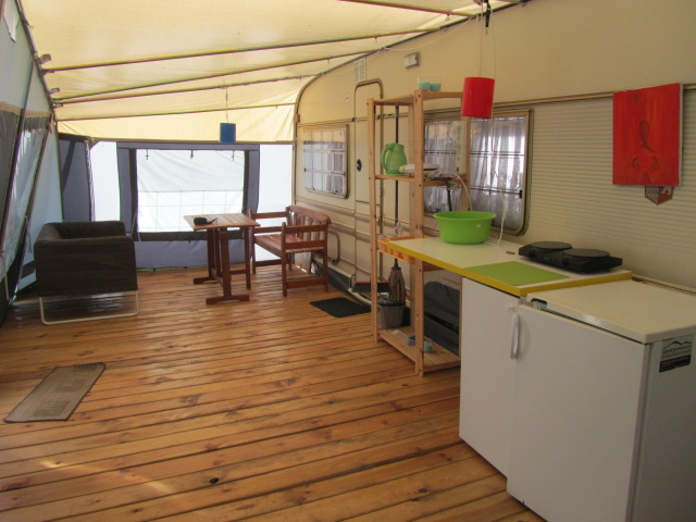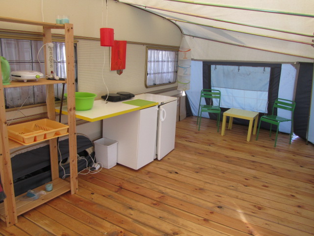 Klasa C nie posiada WC, ani łazienki. Przyczepa dzięki temu staje się sypialnią. Sanitariaty są ok. 15 m od przyczepy.