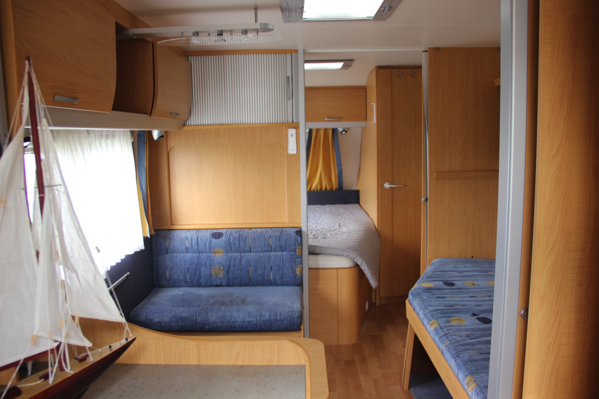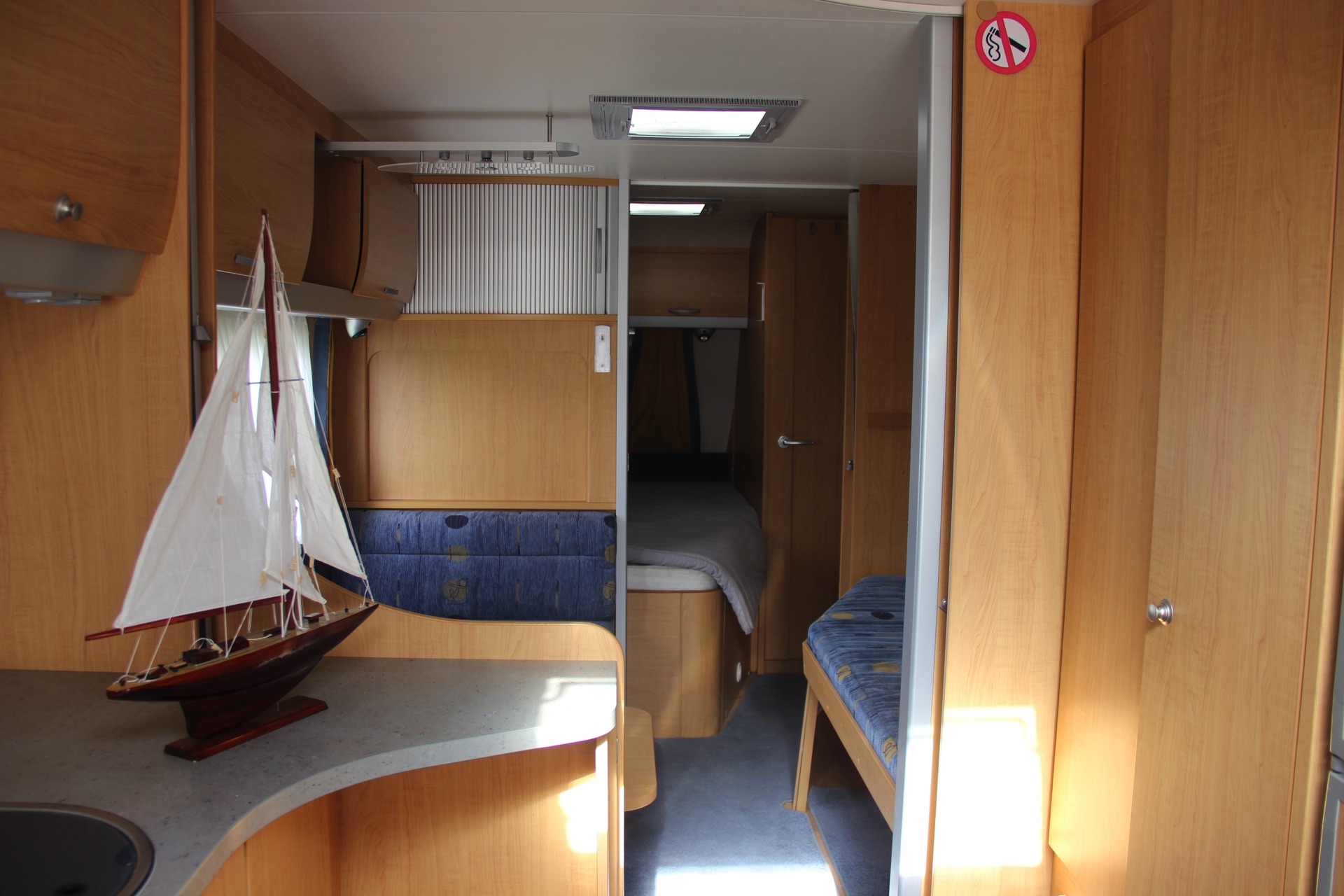 • na końcu przyczepy po prawej łóżko małżeńśkie