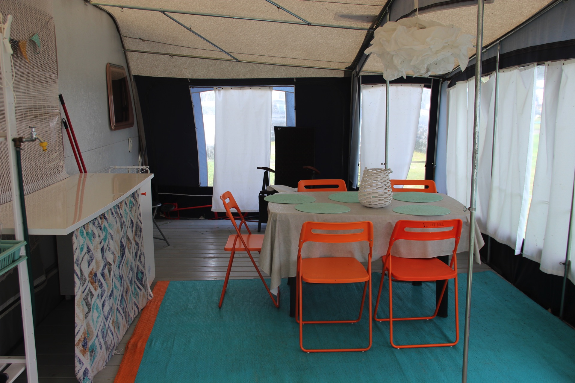Przyczepa stoi w 2 linii brzegowej na polu Chałupy 6 po lewej stronie od wjazdu.  Z przedsionka widać zatokę. Przyczepa stoi w szerokim pasie co sprawia, że obok jest sporo wolnego miejsca.